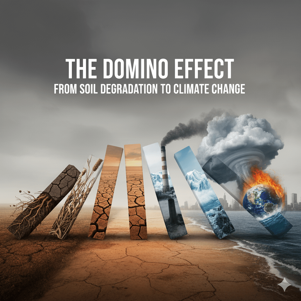 When soils degrade, their carbon-holding power collapses. Instead of absorbing CO₂, they release it back into the air. Soil stores nearly three times more carbon than the atmosphere but only if we protect it.