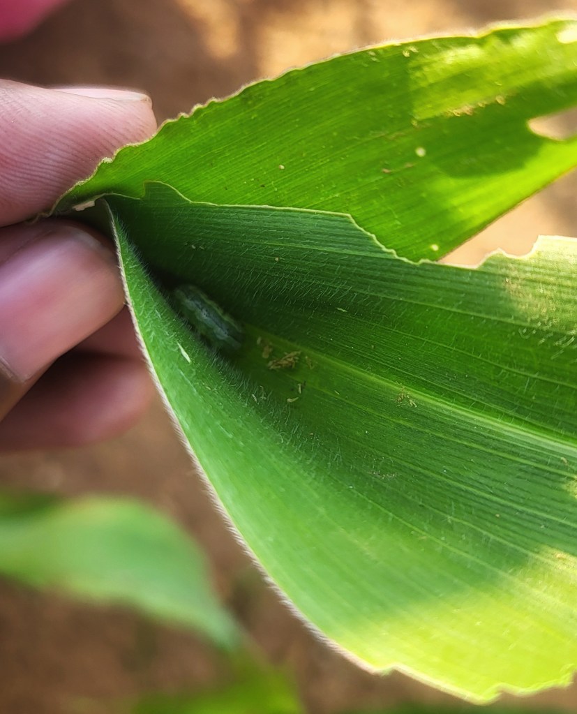 On 10 November, I checked the plants carefully and confirmed that the damage was caused by fall armyworm. The feeding was active, and the pattern was clear.