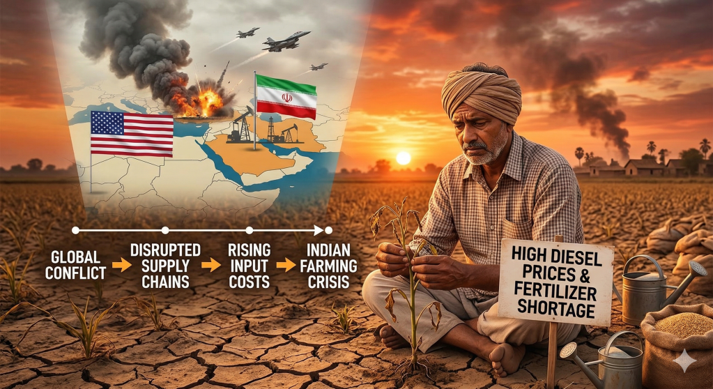 - Global conflicts can indirectly influence fertilizer supply, export markets, and farm income in India.